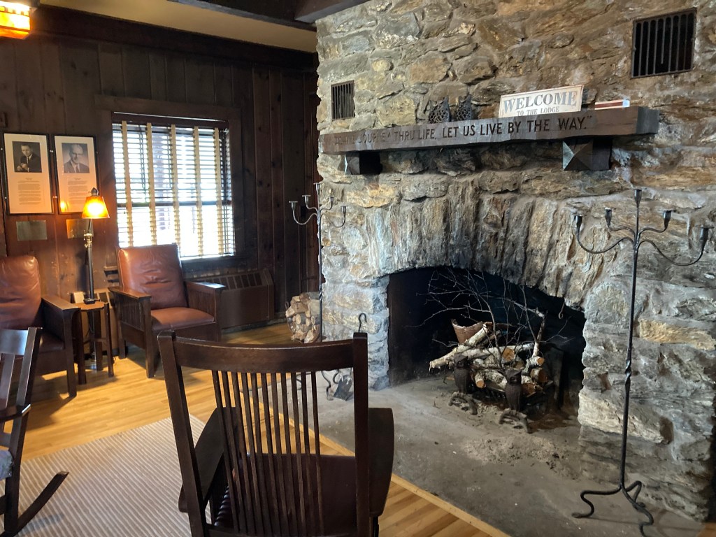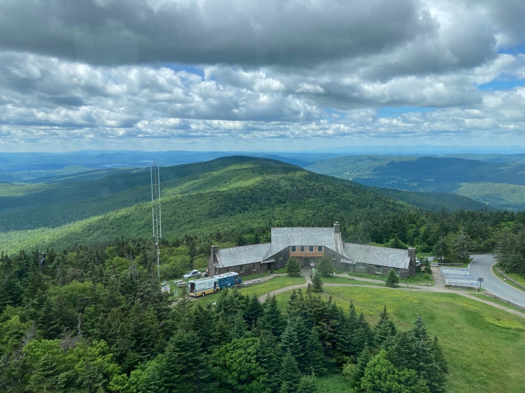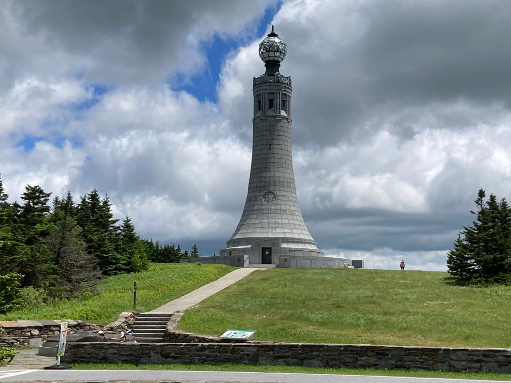 Through the early 20th century, Berkshire County managed the reservation, adding new hiking trails, improving access, and opening Rockwell Road from the south in 1907. The Appalachian Trail was routed over the summit in 1929, and by 1931, the entire Massachusetts stretch of the AT was completed. In the 1930s, a wave of WPA and CCC projects brought lasting changes to the summit landscape. Crews built or enhanced roads, trails, and lean-tos. Between 1932 and 1938, they constructed Bascom Lodge, the still-operating stone lodge at the summit. They also completed the Massachusetts Veterans War Memorial Tower in 1932—a 93-foot granite monument honoring World War I soldiers (later rededicated to all state veterans). The tower has at times functioned as a navigational beacon, with light shining through its translucent globe.