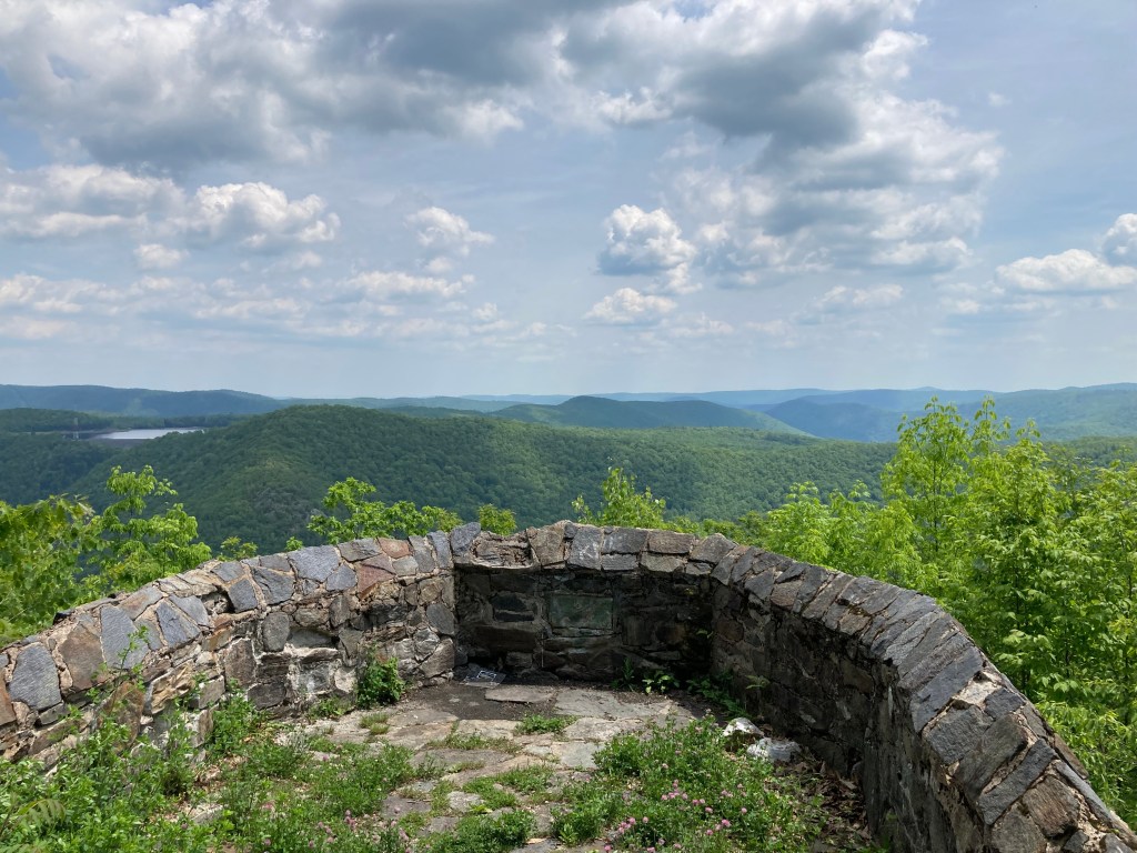 Spruce Mountain Loop–The loop I followed ran 6.7 miles with 1,355 feet of elevation gain. It’s the only loop that summits Spruce Mountain. I recommend proceeding in a clockwise manner, easterly along the Monroe Road (a dirt access road) and taking the Hunt Hill Trail as a diversion out and back to the Raycroft Outlook. This is an old stone terrace constructed by the Civilian Conservation Corps during the 1930s with a splendid view of the Deerfield River Gorge. From here, proceed up the Spruce Mountain Trail to the summit and the narrow vista there. The westerly side of the Spruce Hill Trail is windy and vague in many places. Easy to lose track of. I strongly recommend using a GPS app like Alltrails to stay on track. This hard to follow westerly section is the only downside to an otherwise great loop.
