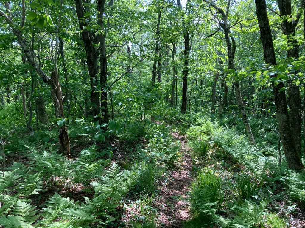 General info: Spruce Mountain, part of the northern Berkshire Range, is located near the Vermont border in the isolated Monroe State Forest. The area is the most sparsely populated in the state. Due to this fact, and the extremely steep slopes of Spruce Mountain, a good deal of old growth forest still survives within the boundries of this state park. Indeed, the area feels ancient, and in my three times hiking there, I’ve never seen another soul. Spruce Mountain itself is a moderately challenging climb (although on the day I actually targeted and hiked the summit it was about 90 degrees and felt seriously challenging). There’s really only one loop (see remarks on the route below). There is a vista at the end of a very short side trail just a few steps south of the main trail that summits the mountain. It is a narrow view, but quite pleasing.