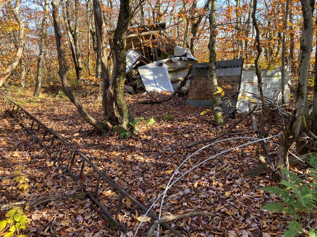 By contrast, Spruce Hill North is wooded, and while the Hoosac Range Trail passes just 200 feet west of the highpoint, reaching the true summit requires a short bushwhack off-trail. The highpoint is clearly marked by the ruins of an old radio tower and equipment shed—not as inspiring as Spruce Hill’s peak, but still the highest point in this part of the Berkshires and worth checking off your list.