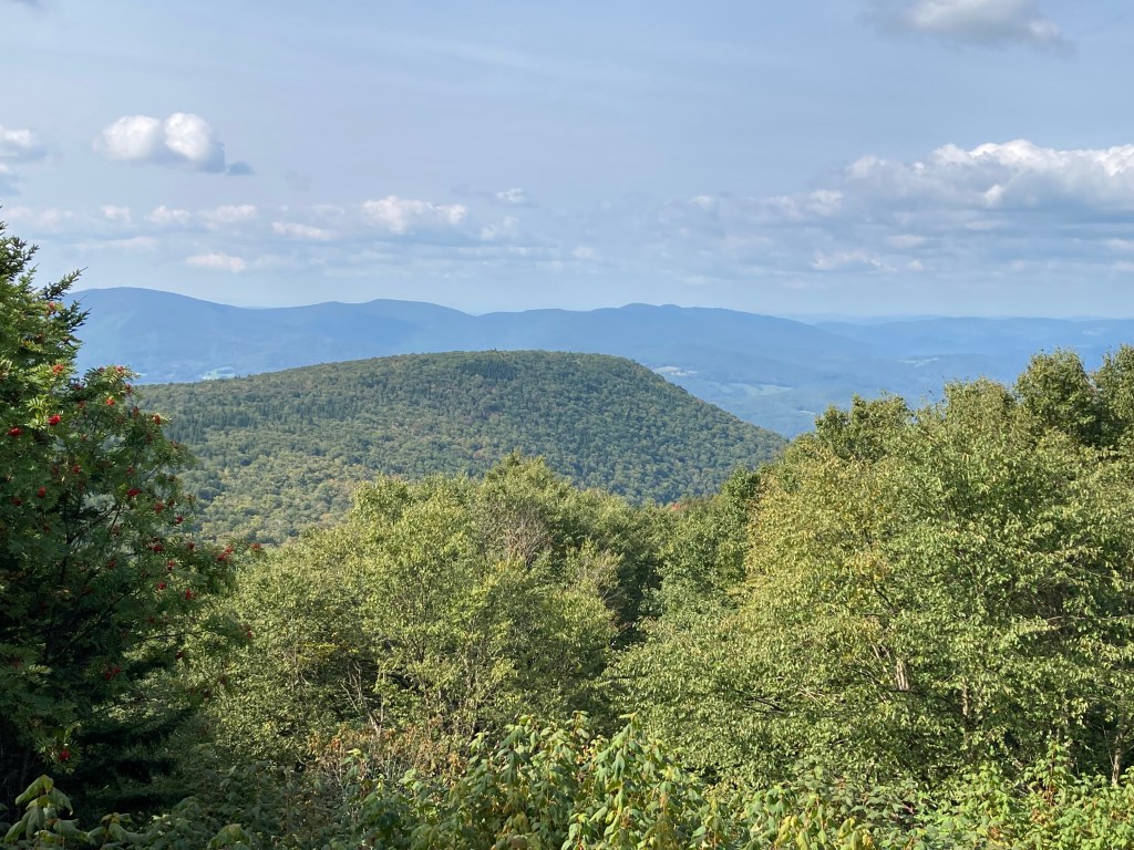 General info: Stony Ledge, although #10 in terms of elevation, is easily in my top five favorite Massachusetts peaks for the quality of the trails and the absolutely stunning view. It lies within the Mount Greylock State Reservation, the 12,000-acre preserve that protects the highest mountains in the state. The ledge one of the clearest perspectives of the Greylock Massif — including a dramatic look straight at Mount Greylock’s summit and a sweeping view down into the glacially carved bowl known as “the Hopper.” From this vantage point you can see westward toward the Taconic Range and north into Vermont, with more than a thousand feet of vertical relief beneath you as the woods fall away into the valley below.