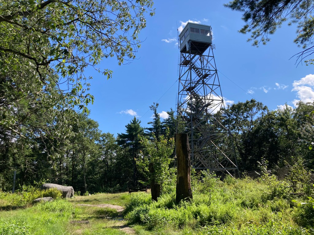 General info: Mount Grace is a prominent monadnock in north-central Massachusetts, just two miles south of the New Hampshire line. Heavily wooded and rising well above the surrounding hills, it is the third-highest point in Massachusetts east of the Connecticut River (after Mount Wachusett and Mount Watatic). The mountain is part of the nearly 1,600-acre Mount Grace State Forest and features a network of multi-use trails. Atop the summit stands the Warwick Fire Tower, a 68-foot steel lookout tower built in 1939, which is open to climb and offers amazing 360° views. From the top you can see landmarks like Mount Monadnock to the northeast and Mount Snow on the northwestern horizon. On the ground, the summit has a small grassy area with picnic spots and a USGS survey marker, but no natural vistas – the fire tower is key to getting the view. Mount Grace’s trails are moderately popular with hikers yet far quieter than touristy peaks; you might have the tower to yourself on a weekday. The mountain’s extensive state-owned land and the presence of the New England Trail (NET, formerly the Metacomet-Monadnock Trail) crossing its summit make it a significant recreational hub in this rural area. Yet despite its accessibility, Mount Grace retains a remote feel.