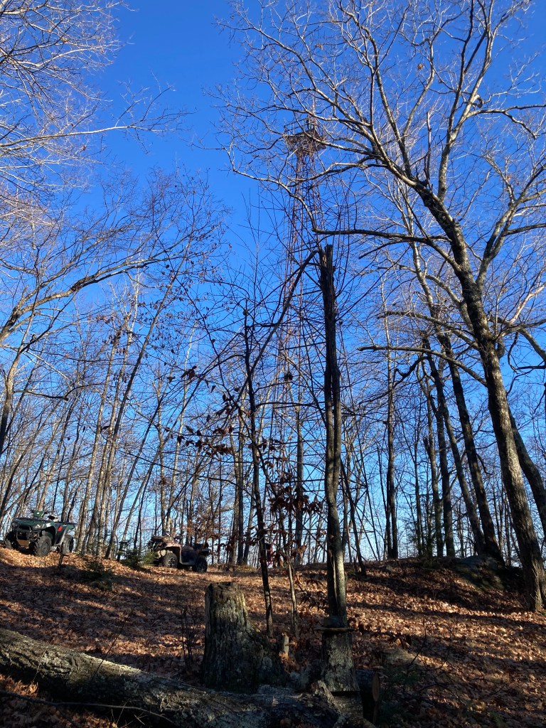 The most visible historic feature today is the airway beacon, a rusting steel frame at the summit. In the 1930s, the federal government installed rotating beacons on high ridges to help guide early airmail and commercial flights. Gobble Mountain’s summit was chosen as one such site, and for decades its tower helped mark the Springfield–Albany corridor. The light was extinguished long ago, but the structure still stands—an imposing landmark among the trees.