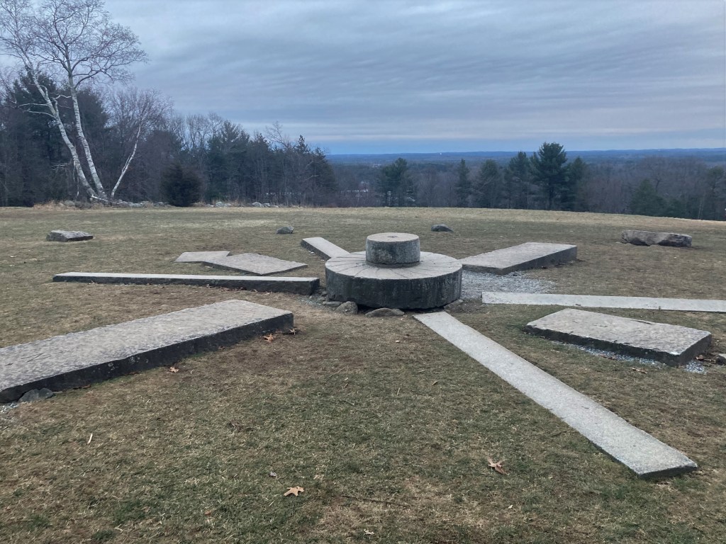 Historical background: On June 17, 1775, townspeople from Andover climbed Holt Hill to watch the distant glow of Charlestown burning after the Battle of Bunker Hill. The hill itself was named for Nicholas Holt, an early settler of Andover in the mid-17th century who established a farm here. His family worked the land for generations into the late 1800s. In 1917 the property was acquired by Charles W. Ward, and his widow Mabel Ward donated Holt Hill and surrounding acres to The Trustees of Reservations in 1940 as a memorial to her husband. As part of their legacy, the Wards had the now-famous Solstice Stones installed at the summit of Holt Hill. These granite blocks (added in the 1930s) are arranged in a large ring: the largest mark the cardinal compass points, and additional stones align with the exact spots on the horizon where the sun rises and sets on the summer and winter solstices.