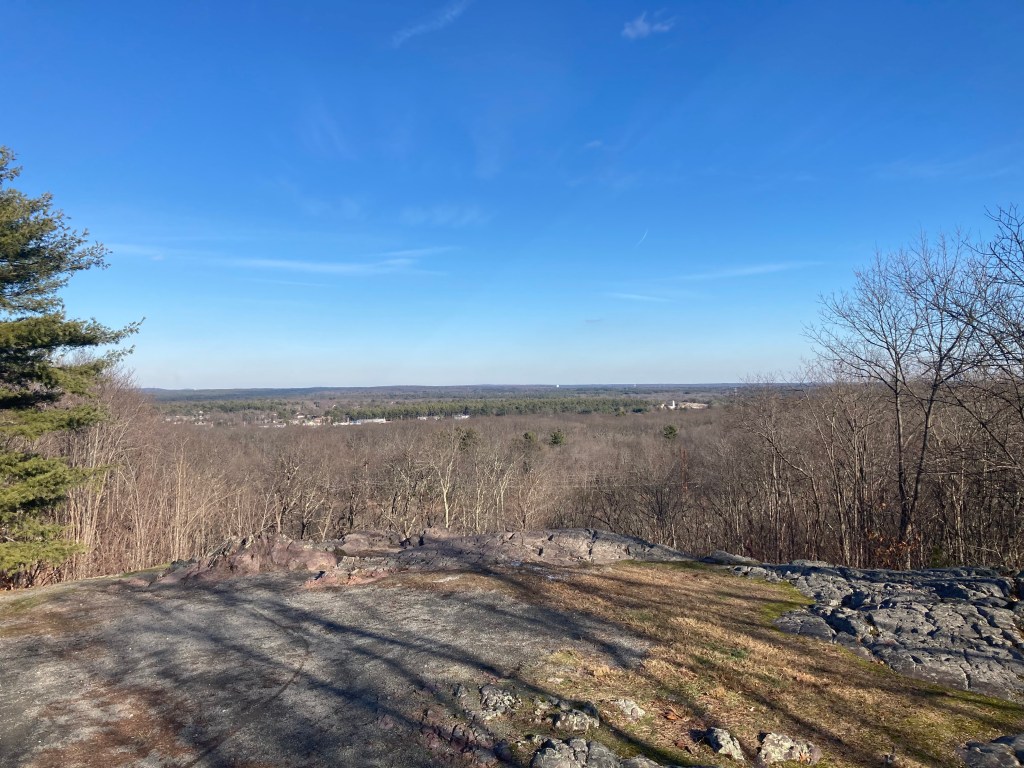 General info: Sunrise Hill is situated in the northern part of North Attleborough within the World War I Memorial Park – the town’s largest park. This modest hill is the highest point in North Attleborough and Bristol County. The hill rises from otherwise gentle terrain, giving it a prominence that allows for a nice lookout near the summit. On clear days, one can see for miles across the mostly flat southeastern Massachusetts landscape. The summit area itself is partially wooded. The hill features a park, small petting zoo, arboretum plantings, walking trails, frisbee golf range, and other recreational activities. It’s a busy place. Parking is essentially at the peak of the hill, which doesn’t make for much of a hike. But there are trails leading down the hill which allow a bit of a hike (walk?). There is a fire tower near the summit that is fenced off and not open to the public. Best as I could figure, the true summit is on a wooded knoll just north of the main lookout.